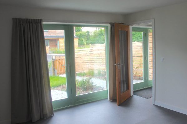 The timber frame houses are built according to passive house principles, though are not validated as such due the cost of doing so, versus the benefits.