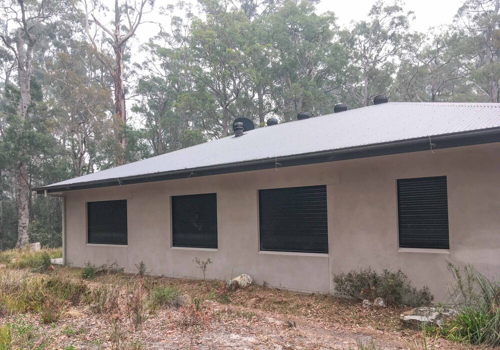Late in the house design process, we decided to fit bushfire sprinklers to provide an extra layer of security against the threat of bushfire attack. We thought that they shouldn’t be necessary for building fire protection but that they might prevent damage to the shutters by radiant heat.