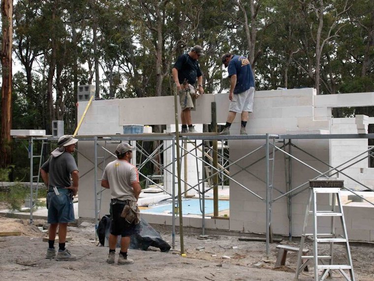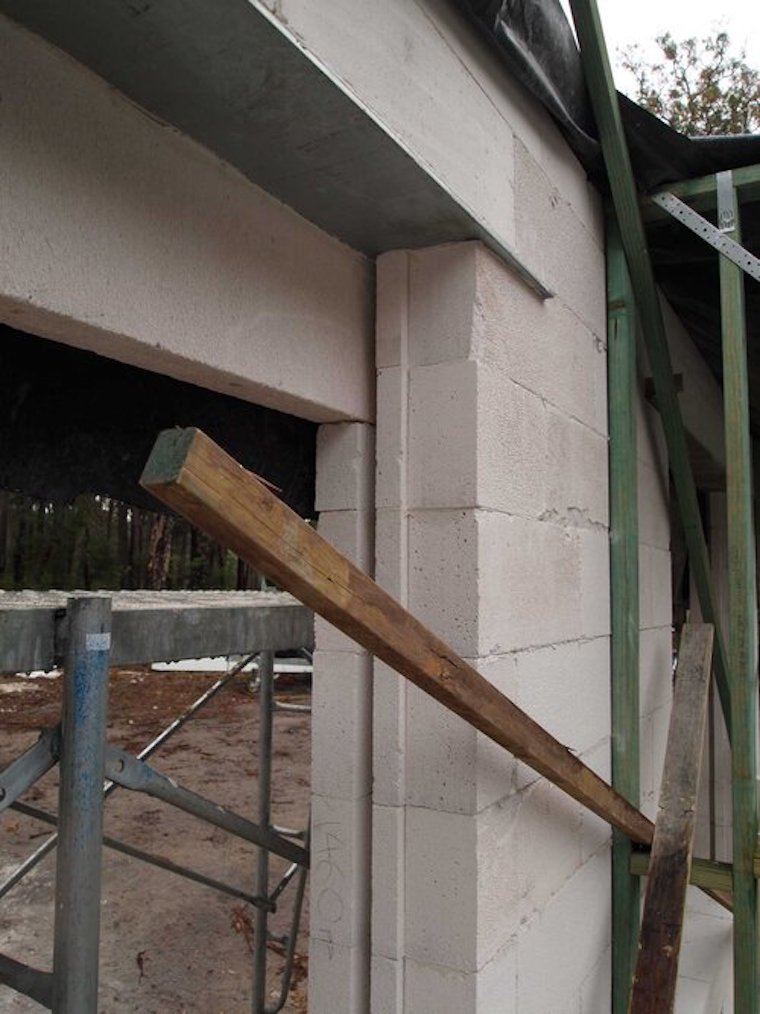 External walls are constructed from 250mm thick blocks of Activated Aerated Concrete (AAC), marketed as Hebel. The walls are load-bearing, requiring no additional framing materials.